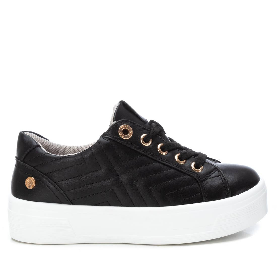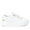 Zapatilla de niña, de la marca Xti kids. Fabricada en material metalizado que imita a la piel, con ligero acolchado marcado por pespunte. Cordones regulables. Con doble suela de goma antideslizante. Con plantilla extraíble. Este modelo ha obtenido el certificado vegano por la organización mundial PETA (Organización de los derechos de los animales).