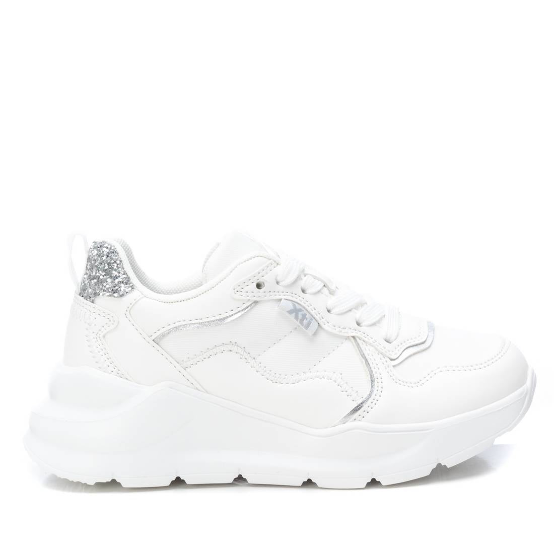Zapatilla urbana de niña. Marca Xti Kids. Fabricado en material que imita la piel. Cierre mediante cordones regulables para un mayor ajuste. Con tirador trasero para facilitar la puesta. Gruesa suela de goma antideslizante. Con plantilla extraíble. Este modelo ha obtenido el certificado vegano por la organización mundial PETA (Organización de los derechos de los animales).