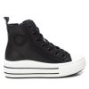 Zapatilla de niña, de la marca Xti Kids. Fabricada en material que imita a la piel. Cordones regulables. Zapatilla de plataforma con suela de goma antideslizante. Este modelo ha obtenido el certificado vegano por la organización mundial PETA (Organización de los derechos de los animales).